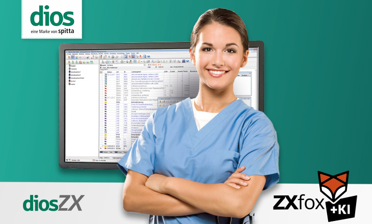 - Echtzeit-Zugriff auf geprüftes Abrechnungswissen mit dios ZX FOX